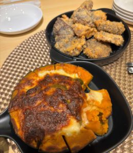 ・馬場園芸(二戸市)の“かぼちゃサラダ”、“かぼちゃミートグラタン”・さくらだファーム(雫石町)の“しいたけフライ”・キロサ牧場(岩手町)の“めんこい黒牛ローストビーフ”、松原農場(雫石町)の“わさび”添え・みなみよ~とん(岩手町)の“やまと豚肩ロースグリル”、麹屋もとみや(八幡平市)の“大人のしょうゆ麹”・ヨーグルトの食べ比べ「松ぼっくり」「くずまき高原牧場」、麴屋もとみやの“甘酒”かけ・くずまきワイン『無ろ過‐にごり』含め新酒多数